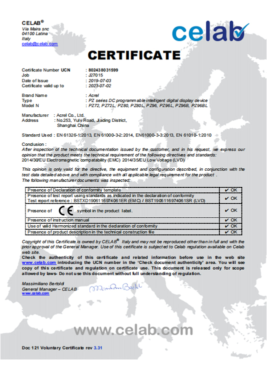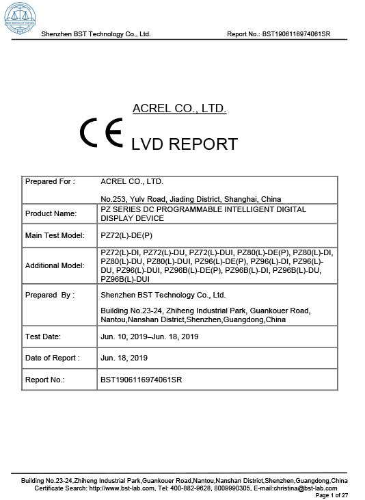 PZ AC METER CE CE-LVD Rapport