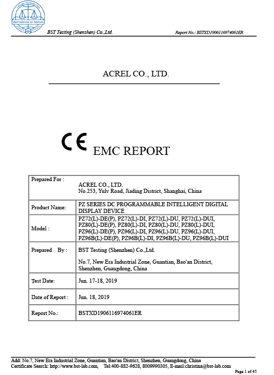 PZ AC METER CE CE-EMC Rapport