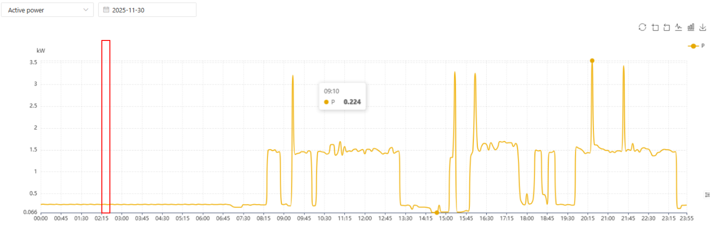 Etterspørsel: Gjennomsnittlig effekt i denne perioden, uttrykt i kW