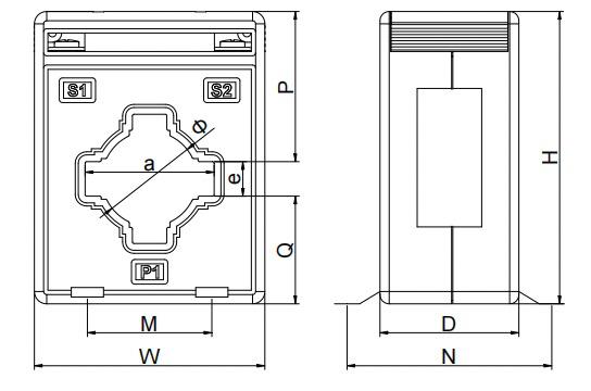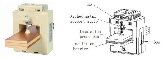 | Spesifikasjon | Vurdert strømforhold | Presisjonsgrad og tilsvarende nominell belastning (VA/Ω) | Rett gjennom tums | Bussspesifikasjon(mm)/nummer | Maks. kabel ytre diameter (mm) | Installasjon | ||